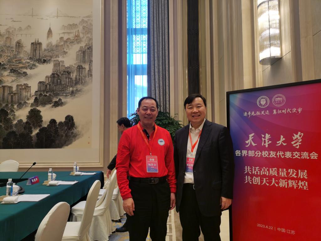 2023年4月世界校友大会期间,戚克栴校友与杨贤金书记合影