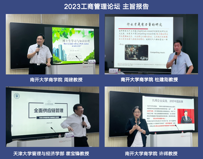 周建教授与大家探讨了知识治理的核心属性和逻辑,报告中他主要分享了人力资本储备和投资的重要性,知识治理、创新治理等背后的逻辑均是理性思维。杜建刚教授围绕“什么是有力量的研究?”,和大家分享了做研究的学问,他表示,真正有力量的研究不是堆砌文字,要多掌握一些研究方法,丰富所做研究的内容与形式。许晖教授分享了案例探索方面的最新研究,对全球化的数字化企业进行双案例对比分析。他提到,企业要有管理实践经验,再到实践智慧。在此基础上,形成理论指引,提升理论智慧,形成理论智慧和实践智慧的相遇、共振。霍宝锋教授从全面供应链的视角给大家介绍了如何做创新型管理,做跨学科、跨领域、跨层次的供应链管理,前提是供应链的领导力,核心是整合管理。