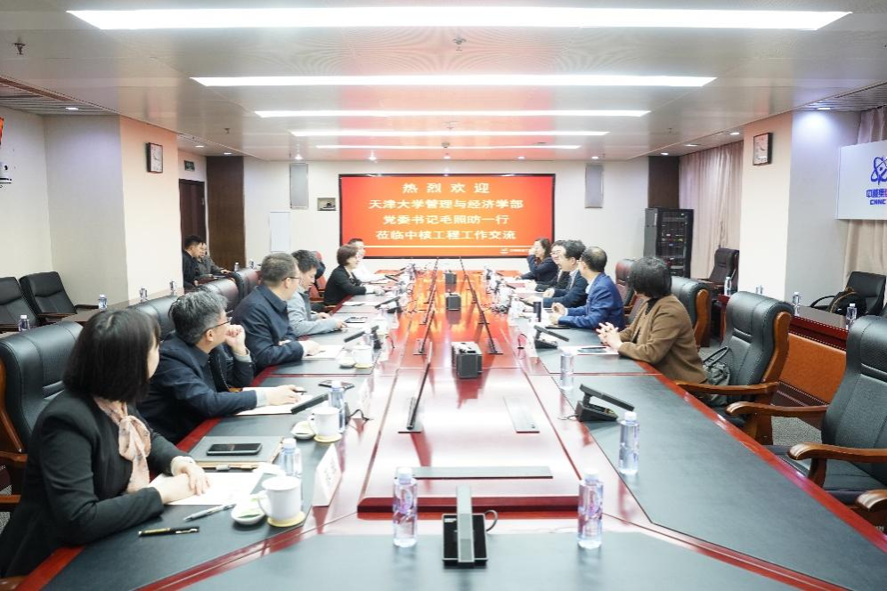 徐鹏飞对毛照昉一行到访中核工程表示热烈欢迎,并指出当前处于核行业快速发展阶段,中核工程对于高端人才的需求较大,同时也需要进一步提升工程项目精细化管理、科研管理和保密管理等方面管理水平,希望后续继续加强校企合作,为建设成为世界一流工程公司创造新动能。毛照昉感谢徐鹏飞等中核工程领导的热情接待,并表示经管学部近年来推动“一系N企”党建共建活动,就是要通过高质量党建引领高质量发展,不断加强产学界深度对接与交叉合作,将理论知识转化为生产力服务于国家战略和产业进步。希望在未来合作中继续充分发挥校企双方优势,相互助力加速实现世界一流企业和一流高校的建设目标。