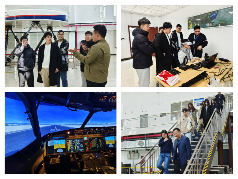 座谈交流结束,学生们参观了安胜公司的工作区域,并在工作人员的指导下先后体验了VR模拟仿真系统和波音737飞行模拟机,切实了解了该公司的先进技术和产品情况。