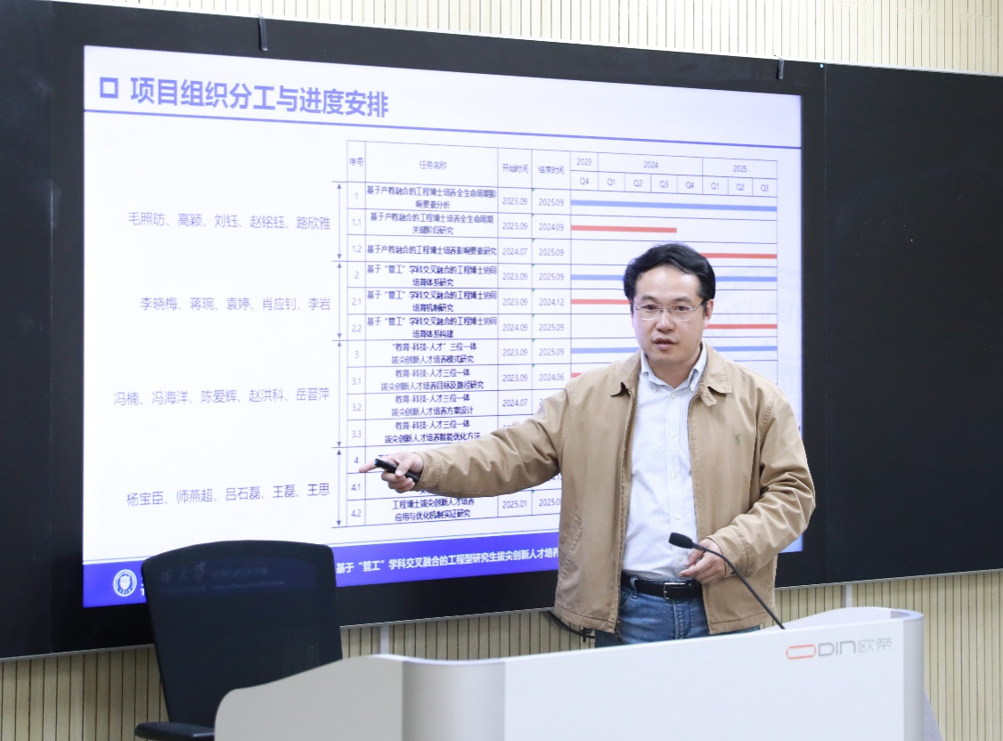 毛照昉、李波、郭均鹏、张慧颖等4位项目负责人就项目研究的意义和内容、团队分工、进度安排、预期成果等方面进行了全面汇报。各项目着眼于高层次拔尖创新人才培养教育改革实践,聚焦研究生培养中的实际问题,从学科交叉融合、课程体系改革等方面创新培养模式。结合人工智能等新兴领域,深挖案例与教学实际的结合,优化研究生培养体系。各项目团队分工层层落实,改革思路清晰明确,研究内容系统全面。