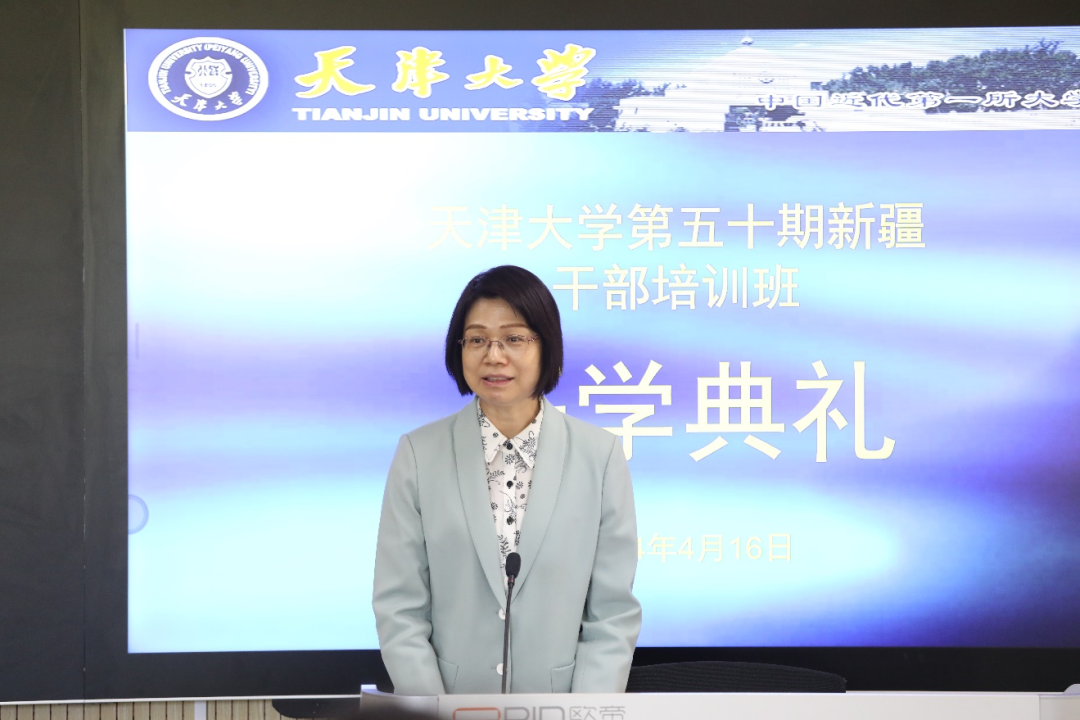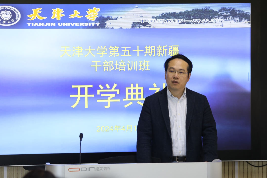 毛照昉代表学部向第50期新疆班学员们表示热烈欢迎。他向大家介绍了天大管理学教育发展的历史沿革以及学部在学科建设、人才培养、社会服务等方面的情况。他提到,新疆干部经济管理培训一直以来都得到了学校、学部各部门的鼎力支持,今年正值天大经管建院40周年暨恢复管理学教育46周年,第50期新疆班恰逢好时机,希望全体学员把握这次难得的学习机遇,潜心学习,提升素养,学有所获。在未来,回到岗位上,带着天大校友的新身份,结合工作中的实际需要,为新疆的社会经济发展作出更多贡献。