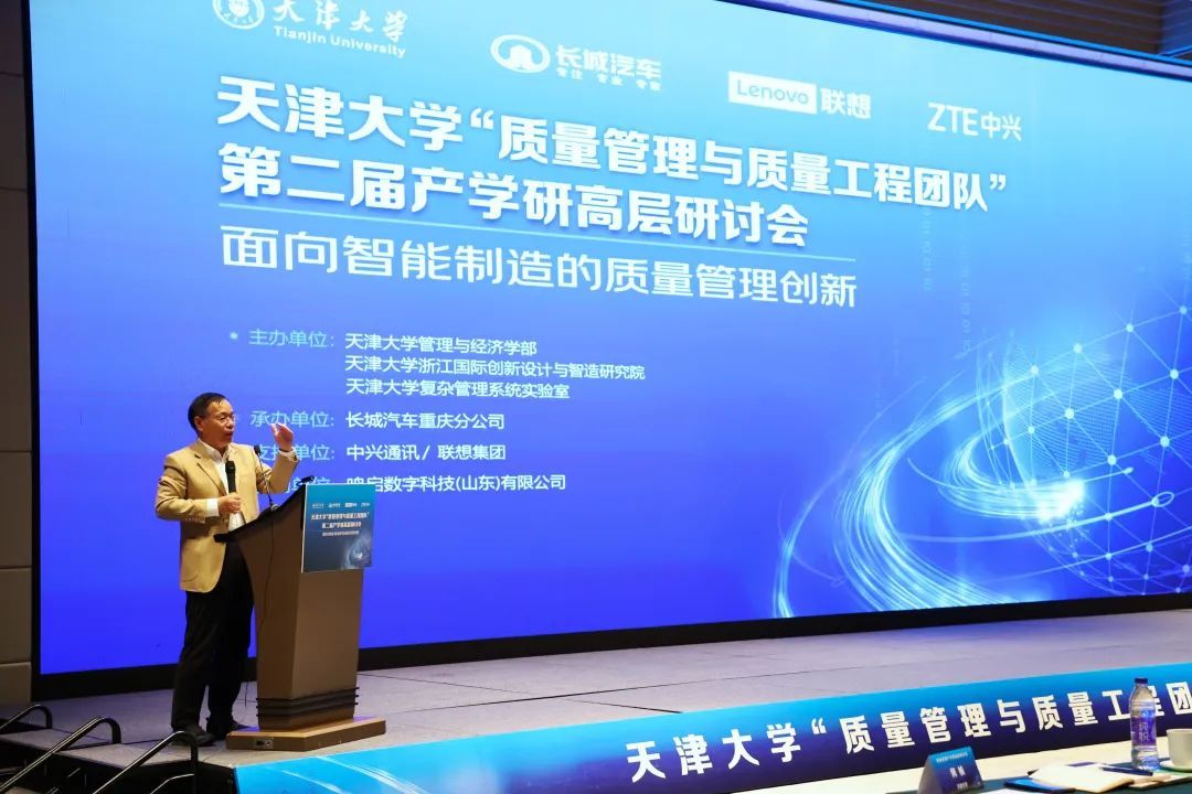 本站讯(通讯员 李岩)4月27日,第二届质量管理产学研高层研讨会在重庆永川成功召开。此次研讨会由麻豆传媒a片 、麻豆传媒a片 浙江国际创新设计与智造研究院及麻豆传媒a片 复杂管理系统实验室联合主办,联想集团和中兴通讯协办,长城汽车重庆分公司承办,鸣启数字科技(山东)有限公司提供会议赞助。本次研讨会采用线上线下相结合的形式,汇聚智能制造领域的企业高层、业界知名专家及国内高校学者等共同探讨面向智能制造的质量管理创新,超过150位来自产业界和学术界的专家学者现场参会,线上参会人数超过500人。