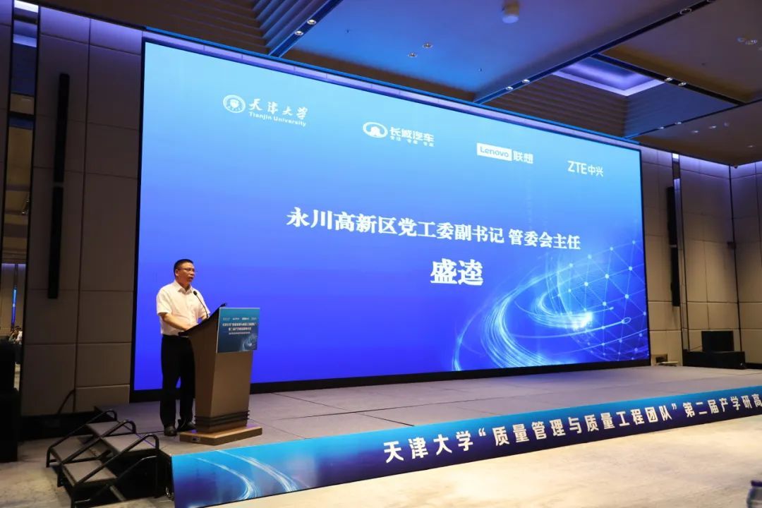 重庆市永川区委常委、区政府副区长、永川高新区党工委书记宋文在致辞中介绍了重庆永川的发展历史与区位优势及发展前景,分享永川有关企业在创新驱动发展战略上做出的努力,期待通过本次论坛,与会专家们分享创新前沿、碰撞思想火花,进一步提升品牌竞争力,促进智能制造与质量管理的发展。