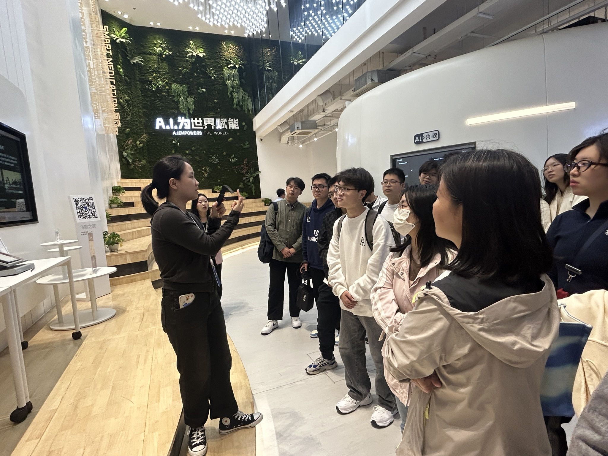 随后,科大讯飞员工围绕“AI+”系列主题,如AI+企业数字化、AI+工业互联网、AI+智慧城市、AI+教育服务等,进行了生动详尽的讲解。通过实际案例和应用数据的呈现,阐述了人工智能如何赋能各行各业,推动社会经济的转型升级。师生们还在展厅内进行了自由探索,亲自体验了各类AI产品。从智能客服的流畅对话,到智能家居的便捷操作,再到教育平台上个性化学习方案的推荐,让大家深刻感受到了AI赋能的强大能力。