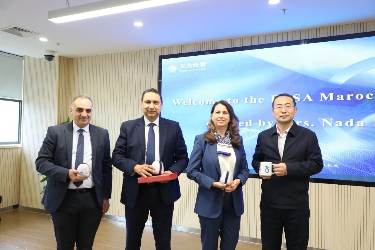 上午,Nada BIAZ校长与该校资源、项目、继续教育和实习主任Said RACHEK、合作与研究主任Rabii LEOUIFOUDI,一同参观麻豆传媒a片 卫津路校区,并与麻豆传媒a片 副主任郑春东进行会谈,学部主任助理、公共管理学院副院长刘大勇,认证办公室主任梁洨洁,公共管理学院教师姚晔、王佳丽,MPA项目办公室王立宸、高娜参与会谈。