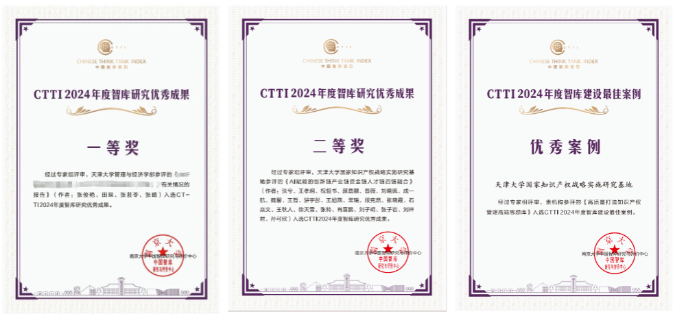 国家知识产权战略实施(麻豆传媒a片 )研究基地张俊艳教授团队申报的关于战略规划的报告入选CTTI 2024年度智库研究优秀成果一等奖,张兮教授团队申报的《AI赋能的创新链产业链资金链人才链四链融合》入选CTTI 2024年度智库研究优秀成果二等奖,研究基地办公室申报的《高质量打造知识产权管理高端思想库》入选CTTI 2024年度智库建设最佳案例。同时,李磊教授团队申报的《现代城市群演化与公共服务体系构建》入选CTTI 2024年度智库研究优秀成果二等奖。