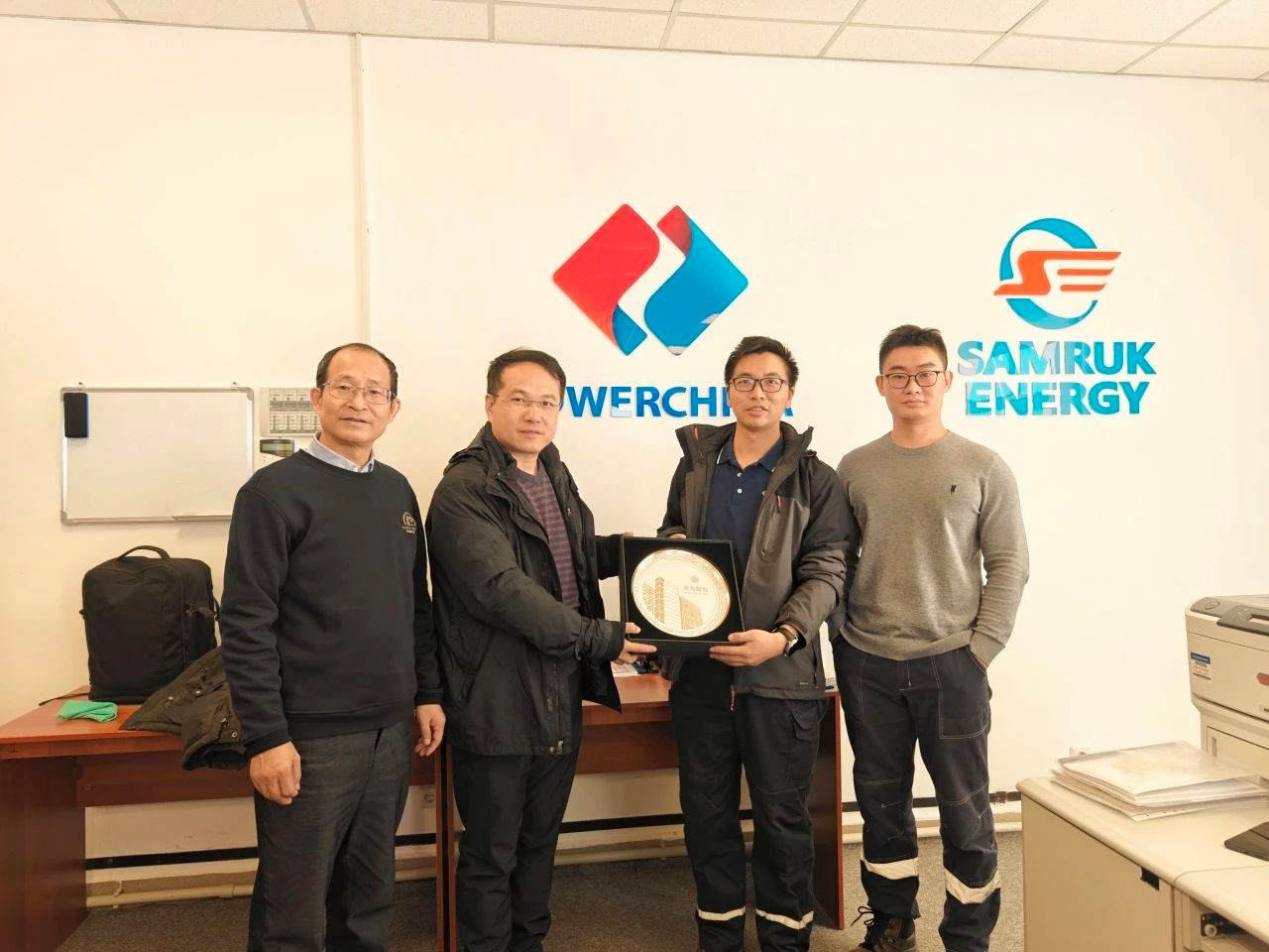 第二站,代表团拜访了中能建海外投资有限公司(中亚能源投资管理公司(筹)),公司总经理冯建江率队欢迎代表团一行来访。座谈会上,双方以项目履约实践为切入点,围绕“光伏+储能”的管理、技术难题与前沿履约趋势展开了深入探讨。