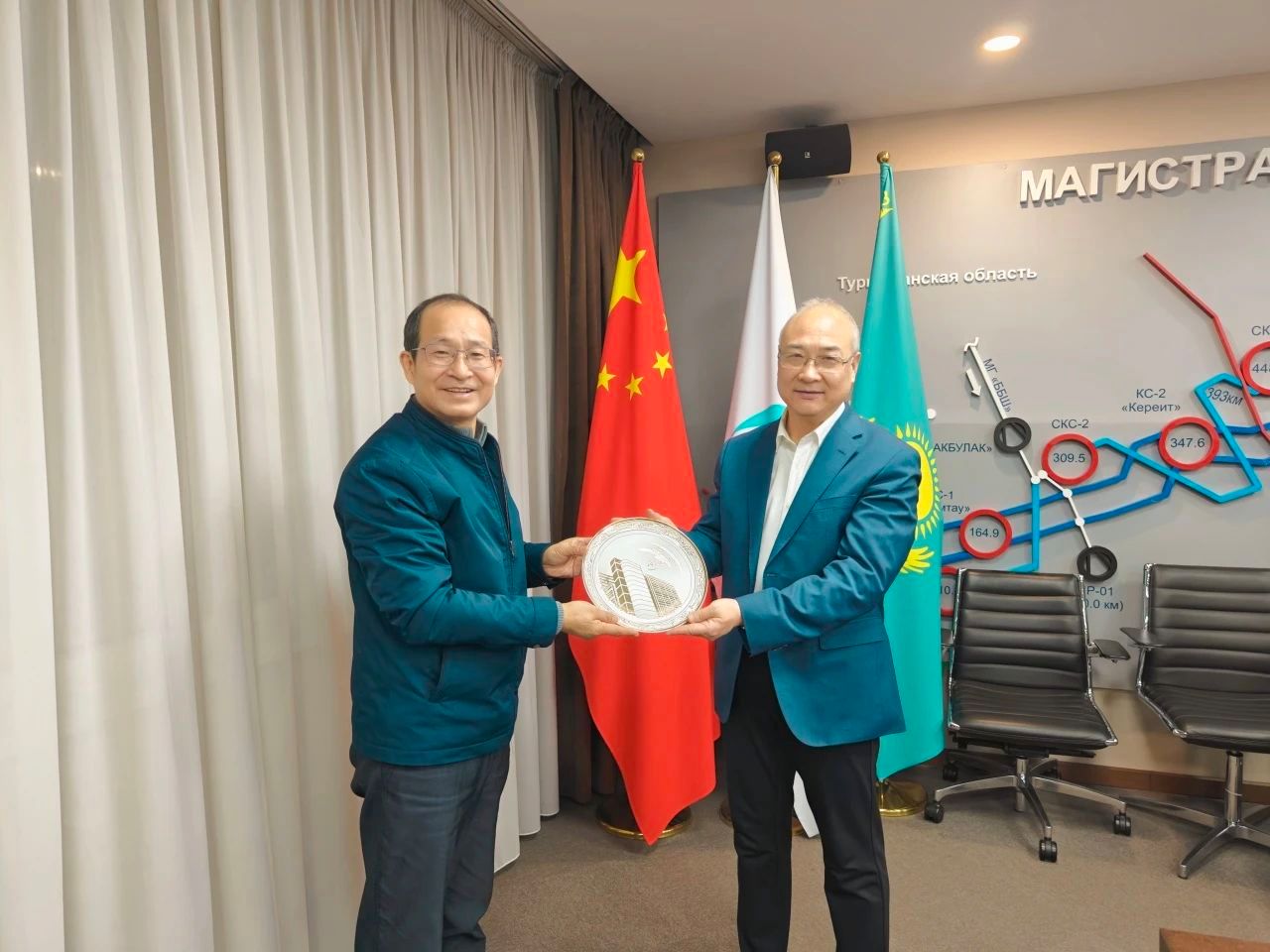 12月17日,代表团前往中油国际管道公司哈萨克斯坦管道公司,公司副总经理兼中哈天然气管道项目总经理黄宏星率队与代表团座谈交流。黄宏星介绍了公司发展情况和在多项目区域化协调管理方面的管理创新。座谈前代表团参观了中亚天然气管道阿拉木图调控中心,并就调控中心的运行模式展开交流。