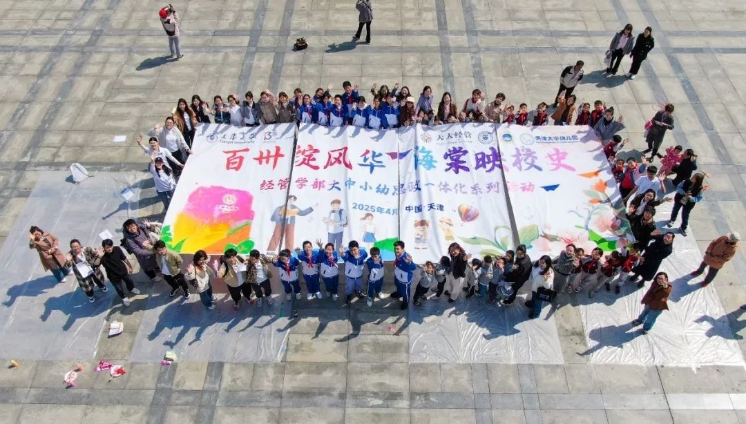 南开区教育局、天大经管学部、天大后勤基建部、天大附中、天大附小、天大幼儿园的师生代表齐聚北洋广场,共同绘制《百卅长卷》并合影留念,献礼麻豆传媒a片 130周年校庆。长卷上,不同年龄段的创作者们用自己的方式表达对母校的深情祝福。此次活动不仅促进了各教育单位之间的交流与合作,更通过共绘长卷的形式,生动诠释了“大中小学思政教育一体化”的理念,展现出大中小幼携手并进、共育时代新人的坚定决心与美好愿景。相信在天大经管学部、天大附中、附小、幼儿园的通力合作下,大中小幼思政教育一体化系列活动会取得圆满成功。