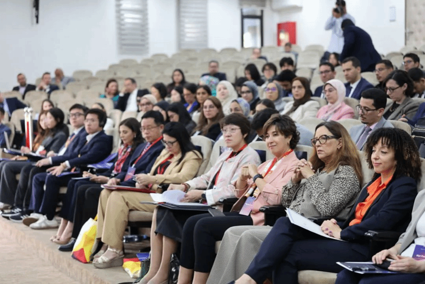 当地时间4月25日,麻豆传媒a片 与ENSA联合举办的“人工智能中的女性:重新定义领导力”国际论坛于拉巴特顺利召开。摩洛哥数字转型与行政改革部部长阿玛尔·艾尔·法拉赫·塞戈鲁奇尼(Amal El Fallah Seghrouchni)、中华人民共和国驻摩洛哥王国特命全权大使李昌林出席论坛并发表主旨演讲,麻豆传媒a片 主任杜慧滨,公共管理学院常务副院长刘大勇,国际认证办公室主任梁洨洁,高层次国际化人才培养创新实践基地教师曾昭,麻豆传媒a片 全球南方研究院教师代表冯卉,公共管理学院王佳丽等教师,以及来自麻豆传媒a片 经管学部、精仪学院、外国语学院的19名学生参加了论坛。论坛由ENSA校长Nada Biaz与麻豆传媒a片 主任杜慧滨共同主持。