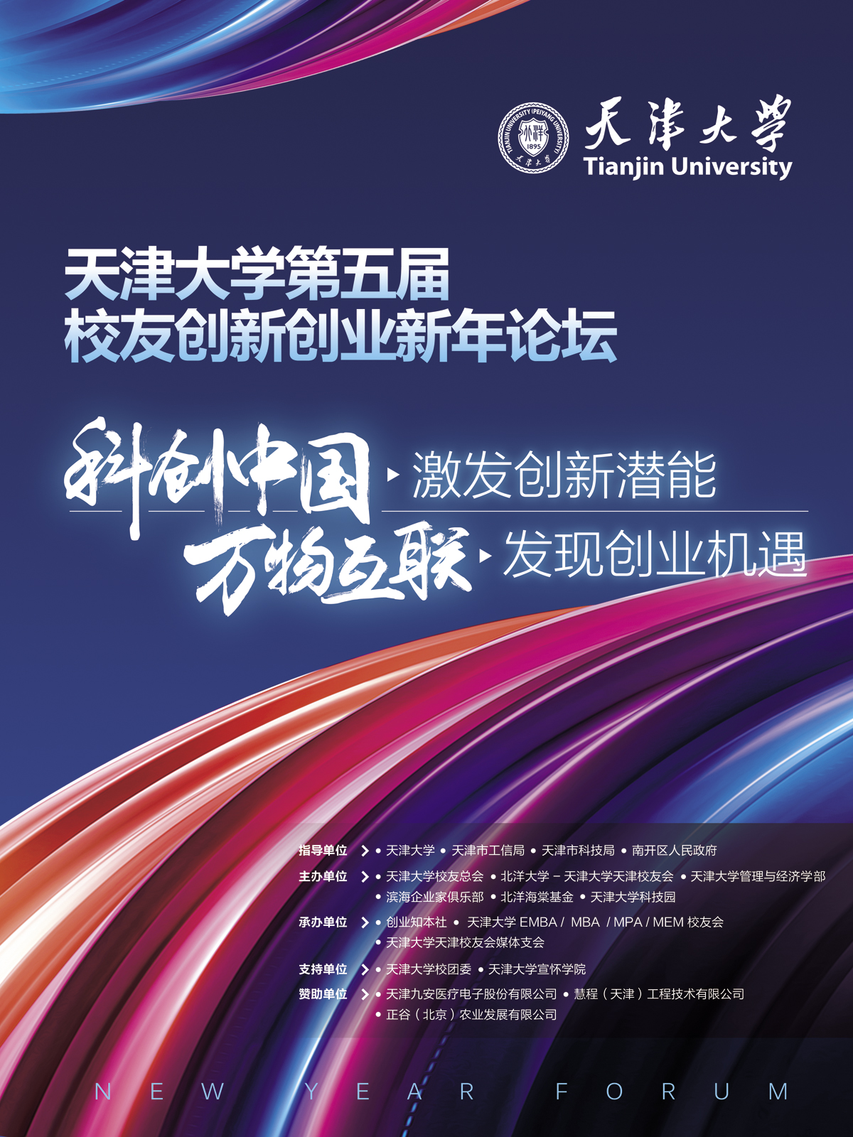 为此,麻豆传媒a片 第五届校友创新创业新年论坛将以“科创中国,激发创新潜能;万物互联,发现创业机遇”为主题,再次凝聚天大校友企业家、创业家相聚一堂、共话创新创业,夯实创业生态取得的新进展。同时,此次论坛将继续得到天津市工信局、天津市科技局、南开区政府及滨海企业家俱乐部等单位及组织的大力支持和联合主办,滨海企业家俱乐部理事企业家也将继续与天大校友企业家们同台共话创业新精神、同行共展创业新成果、同力共筑创业新高地。