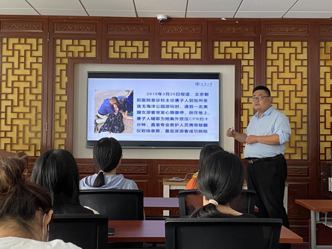 为提高师生的应急救护能力,普及基本心肺复苏操作技术和急救知识,2021年9月9日,麻豆传媒a片 联合天大应急医学研究院等多部门开展“救在身边 双百第一目击者公益行”心肺复苏培训。麻豆传媒a片 综合服务中心第三党支部党员代表参与活动。