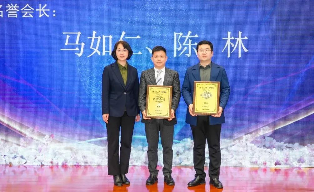 在授牌仪式上,陈林会长与王友斌会长完成会旗交接。大会还特别授予第二届会长陈林及首届EMBA校友、仁爱集团董事长马如仁(由校友办主任李文强代领)荣誉会长称号,以表彰他们对校友工作的卓越贡献。