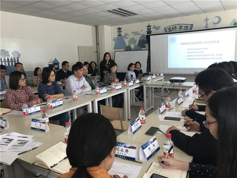 参会的老师们针对课程思政、实践育人以及党建工作等进行了深入的交流。海洋学院魏皓教授、张学峰教授,青年教师薛彬、常帅等,从自己所承担的课程出发,介绍了自己如何将“思政”融入到课程教学中的心得体会。经管学部岳晋萍、高成菊等老师们就对课程思政改革的理解、思政教育与专业课程内容的融合、求实务真精神和敬业精神在专业课程中的融入,引导学生端正思想、扎实理论、帮助学生树立正确的人生观、价值观、世界观,对如何把看似枯燥、难以理解的专业知识变得生动、有活力、有魅力等方面展开了热烈的讨论。