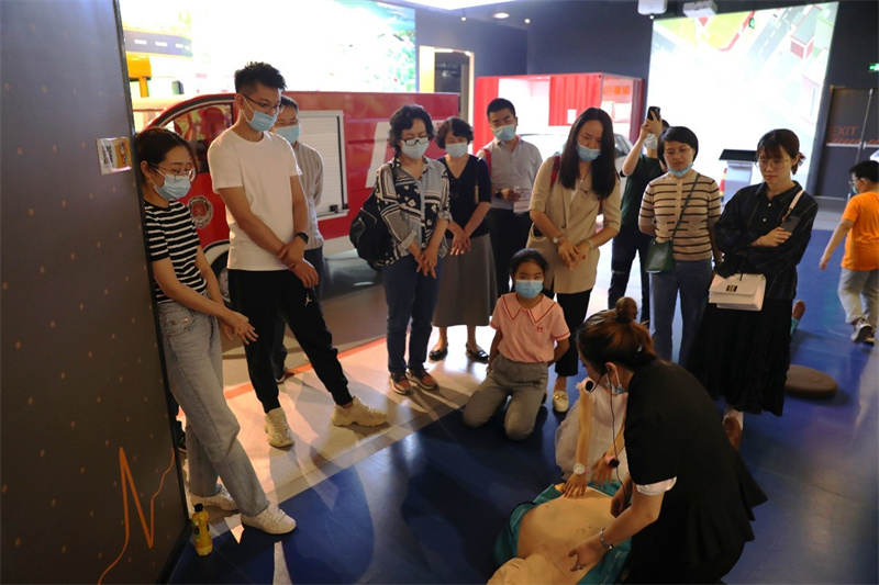 房间内发生火灾时如何自救?被困在电梯里怎么办?地震时如何逃生?一切生产生活的安全问题,都能在中新生态城安全体验馆找到答案。场馆采用多种高科技技术再现各类安全生产事故的“真实场景”,在实物、场景和多媒体技术的互相融合下,让党员们找到身处酒店、房间、卫生间等场景的真实感,实现了还原度极高的情景参与、互动体验。