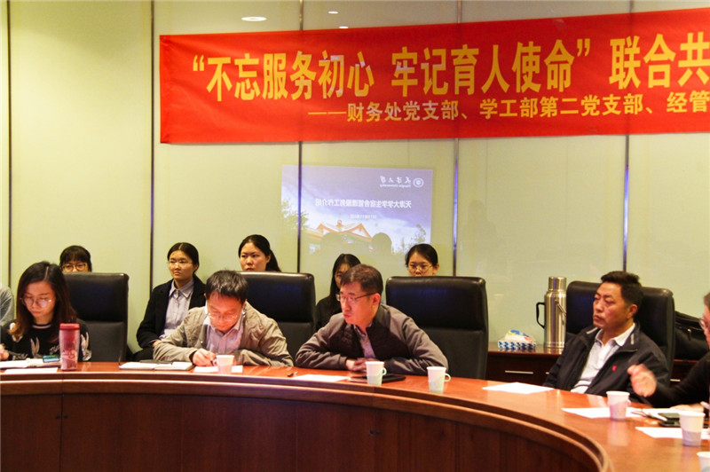 参加活动的人员有财务处副处长苗志勇,学工部副部长李静松,和来自财务处和学工部的各位老师以及经管学部2017级本科生党支部的党员。