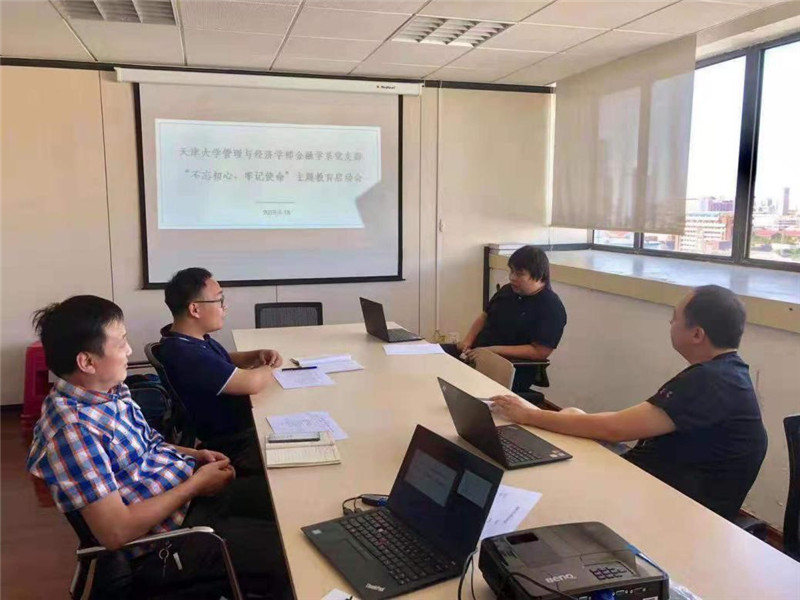 马寅初经济学院党支部召开研讨会,党支部党员面对鲜红的党旗,重温入党誓词,讨论为何反复强调“不忘初心、牢记使命”,为什么学“不忘初心、牢记使命”,要求党员从自身做起,严格要求自己的言行,与优秀党员对标,将学习和工作结合。