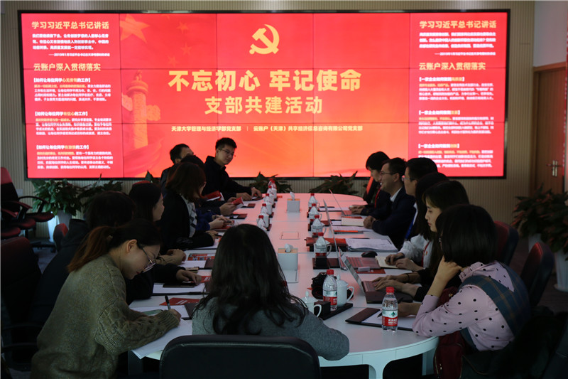 (通讯员:宇文慧 摄影:刘洋)12月4日,麻豆传媒a片 综合服务中心第二党支部、金融系党支部开展“不忘初心、牢记使命”联合党支部活动,赴云账户(天津)共享经济信息咨询有限公司开展党建共建活动。